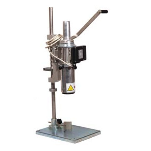 Used to spin tin foils onto bottles, our Vertical Spinner features a guide for perfect bottle placement everytime, making it much faster and easier to use than a comparable Horizontal Spinner. Horizontal Spinners can be difficult to use because you have to center each bottle. The included hand-lever lowers the spinner onto the bottle and then springs back into place when released. The spinner height can be adjusted on the stand to accommodate bottles from 7" to 14" tall. 110 V.   Works with polylam, tin, and aluminum capsules from 28 - 31 mm Ø, up to 65 mm in length. Unit comes unwired for a 110v plug.